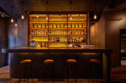また既存区画を利用する事が必須条件であった為、残してある壁や区画、バックカウンターなど、形状はほぼ変更しないままエイジング塗装などで新規のデザイン箇所と馴染むよう統一感を図った。